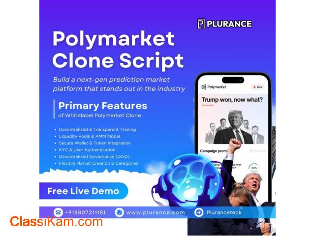 Looking to build your own decentralized prediction marketplace like Polymarket?At Plurance, we offer a high-functioning, 100% customizable Polymarket Clone Script designed for startups and prediction enthusiasts eager to shape the future of decentralized forecasting. Why start from scratch when you can launch a scalable, secure, and user-centric prediction platform with advanced blockchain integration and seamless UI? Whether you’re passionate about crypto-based predictions or aiming to disrupt the prediction industry, our solution empowers you to innovate with confidence.