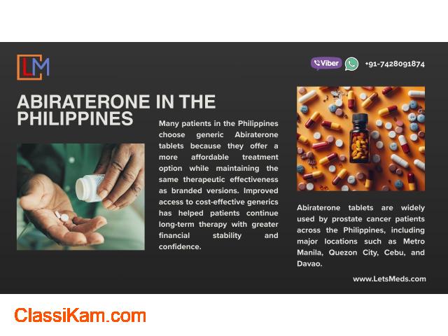 LetsMeds provides genuine Abiraterone tablets at affordable prices for patients in the Philippines. Secure international shipping available to Metro Manila, Quezon City, Cebu, Davao, and nearby areas. Discreet packaging and reliable delivery. Prescription required.