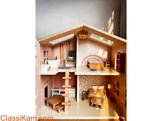 Wooden doll house is a perfect blend of elegance and play, featuring a pastel pink design, floral accents, and functional shutters. Made from premium, sustainably sourced wood, it is durable and safe for toddlers, enhancing hand-eye coordination, fine motor skills, patience, creativity, and imagination. This educational toy is perfect for baby boys and girls, allowing them to immerse themselves in pet pretend play. It is a great choice for birthdays, Easter, Christmas, and holiday parties, suitable for toddlers aged 1 and above.
